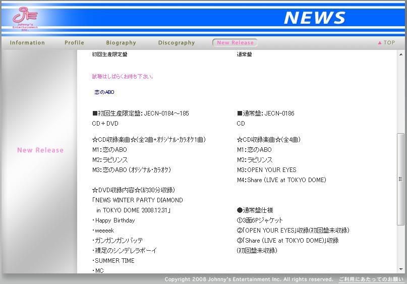 Then I MUST mention this, probably I had already mentioned this before. OK, I think I did. *laughs* Soon after I fell for NEWS, their DVD was released. Or rather, was going to be released. Then I went to NOMANYMORE (repeated as well I just realised), and Yume no Kazu Dake Ai ga Umareru played. That interlude, made me cry. OK, not that bad, but I almost teared or had already teared because of that! Then the link there showed their DVD. And I decided, alright, I should just buy it.